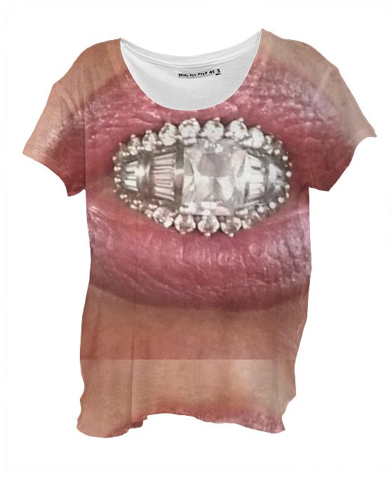 Loose fitting scoop neck shirt with nice drape and curved bottom hem.
