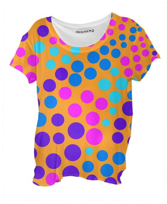 Loose fitting scoop neck shirt with nice drape and curved bottom hem.