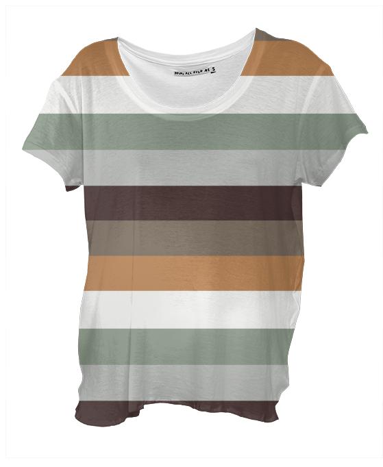 Loose fitting scoop neck shirt with nice drape and curved bottom hem.