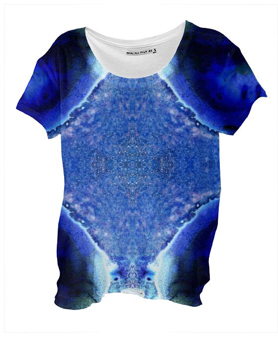 Loose fitting scoop neck shirt with nice drape and curved bottom hem.