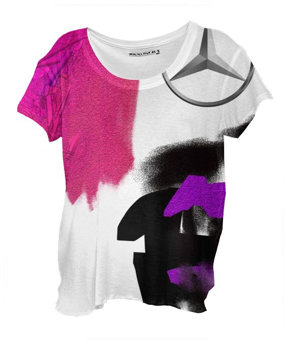 Loose fitting scoop neck shirt with nice drape and curved bottom hem.