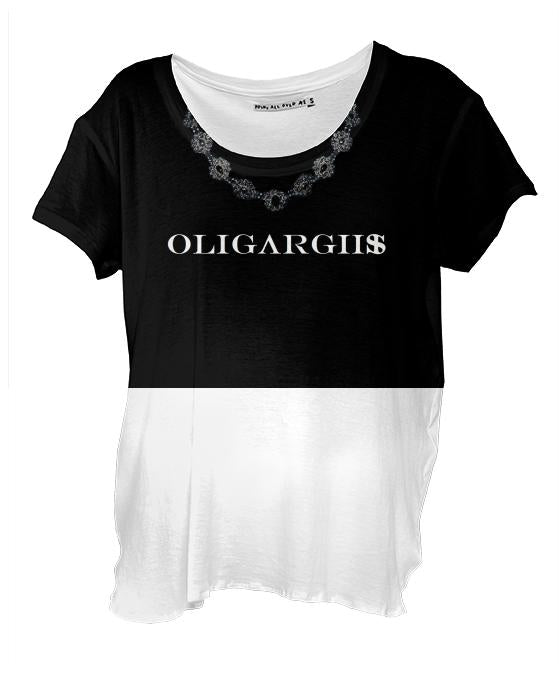 Loose fitting scoop neck shirt with nice drape and curved bottom hem.