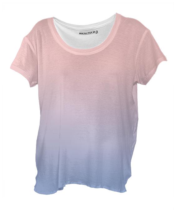 Loose fitting scoop neck shirt with nice drape and curved bottom hem.