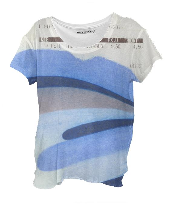 Loose fitting scoop neck shirt with nice drape and curved bottom hem.