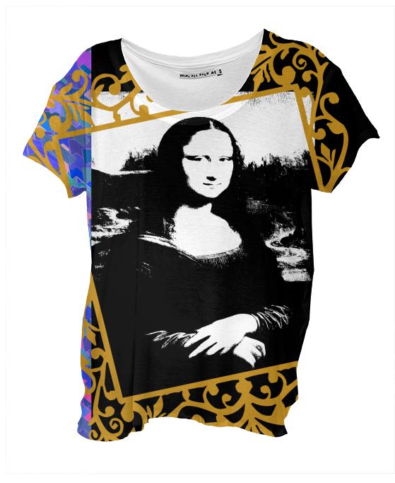 Loose fitting scoop neck shirt with nice drape and curved bottom hem.