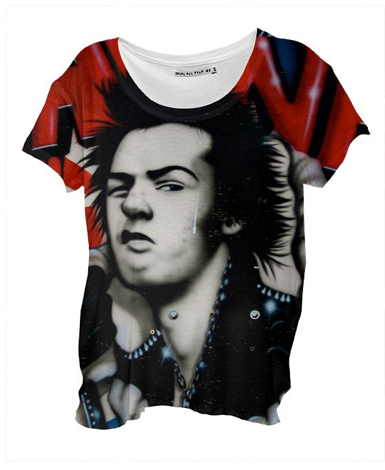 Loose fitting scoop neck shirt with nice drape and curved bottom hem.