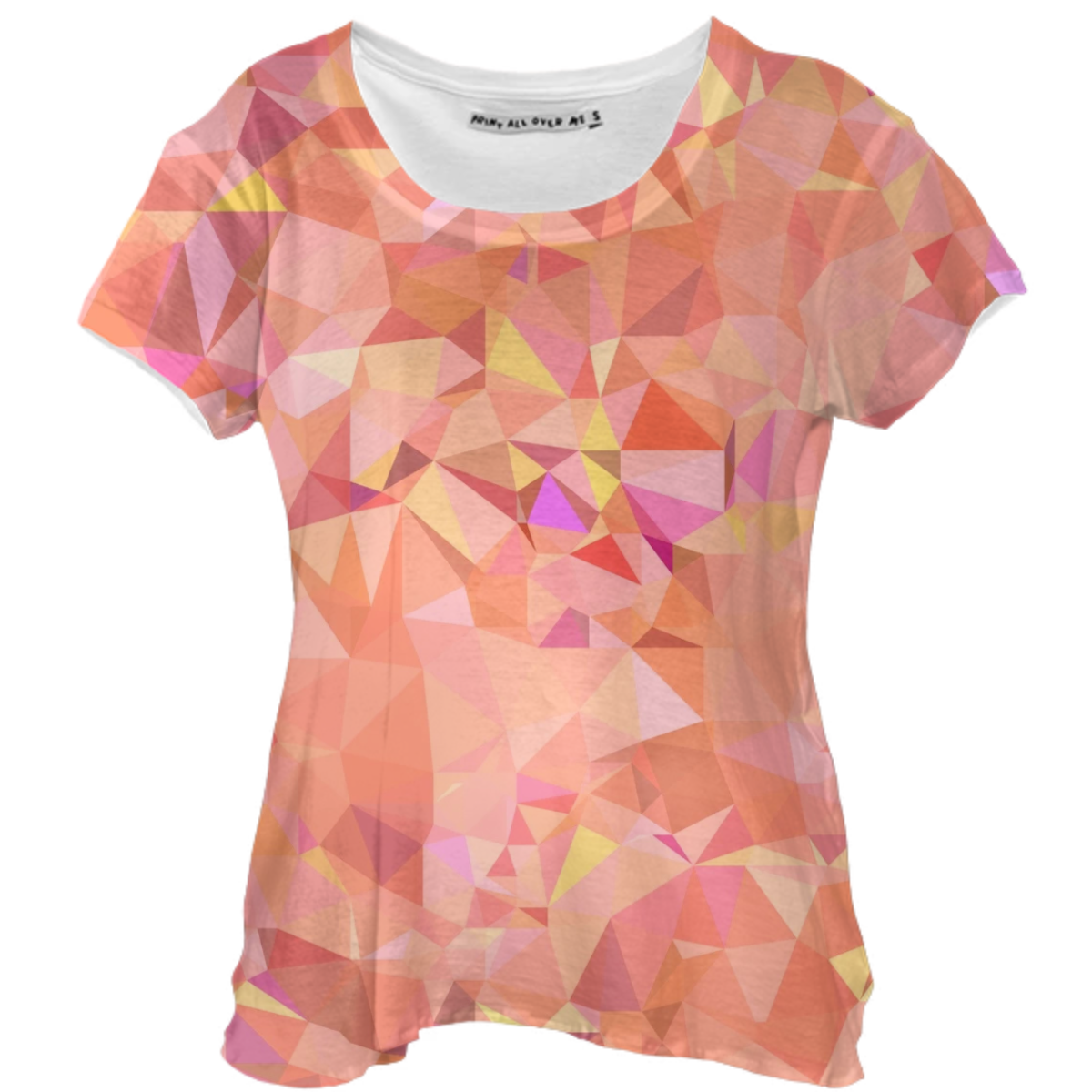 Loose fitting scoop neck shirt with nice drape and curved bottom hem.