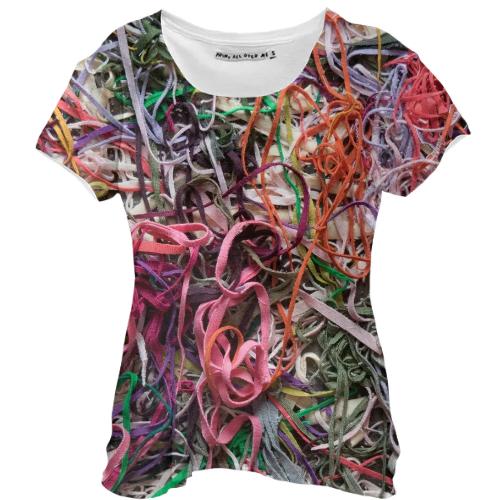 Loose fitting scoop neck shirt with nice drape and curved bottom hem.