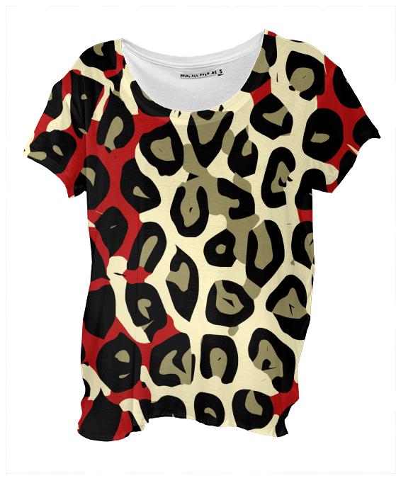 Loose fitting scoop neck shirt with nice drape and curved bottom hem.