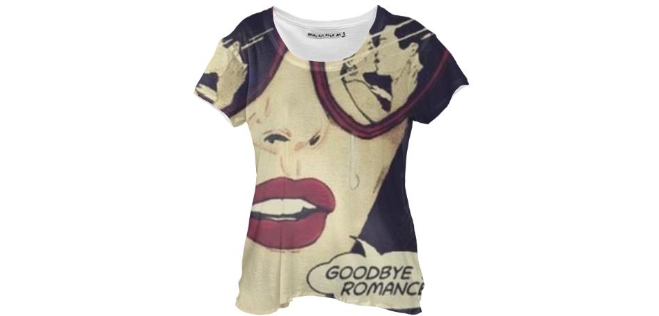Loose fitting scoop neck shirt with nice drape and curved bottom hem.