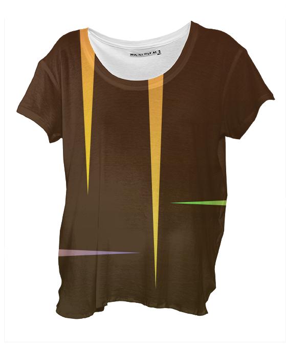 Loose fitting scoop neck shirt with nice drape and curved bottom hem.