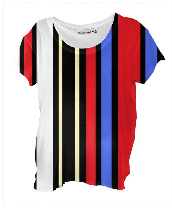 Loose fitting scoop neck shirt with nice drape and curved bottom hem.