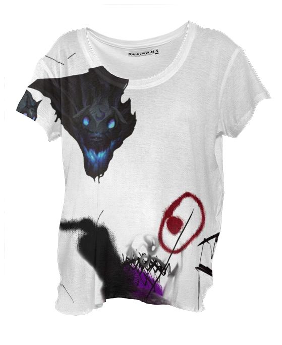 Loose fitting scoop neck shirt with nice drape and curved bottom hem.