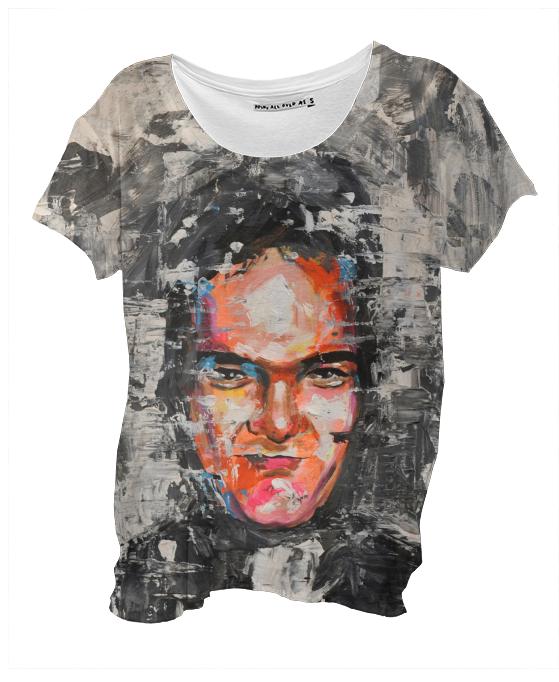 Loose fitting scoop neck shirt with nice drape and curved bottom hem.