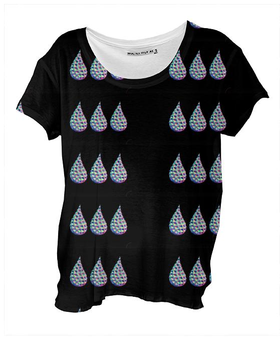 Loose fitting scoop neck shirt with nice drape and curved bottom hem.