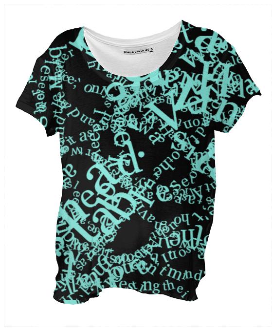 Loose fitting scoop neck shirt with nice drape and curved bottom hem.