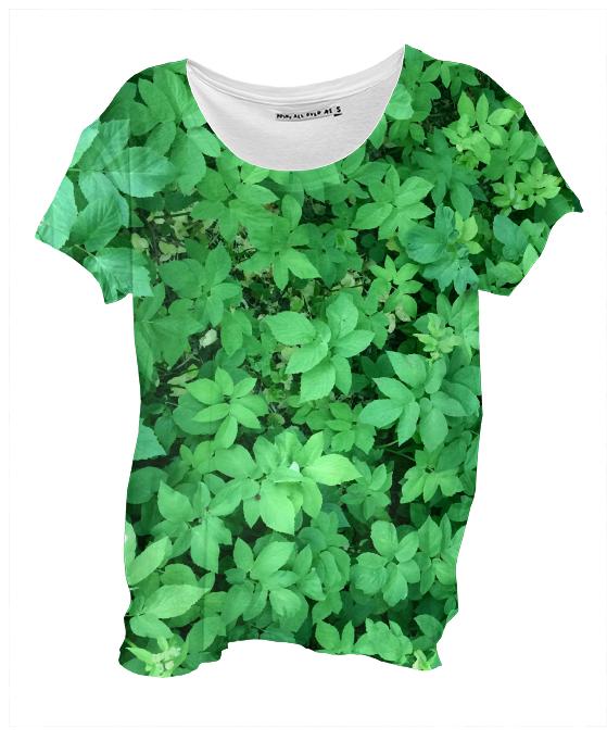 Loose fitting scoop neck shirt with nice drape and curved bottom hem.