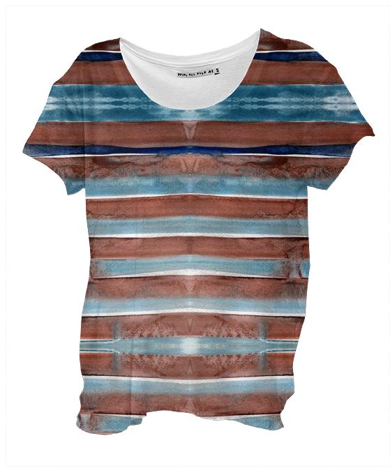 Loose fitting scoop neck shirt with nice drape and curved bottom hem.