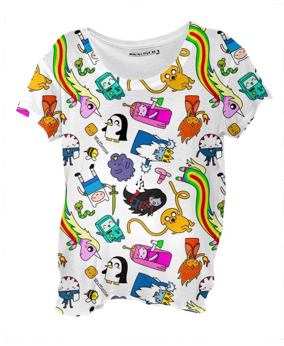 Loose fitting scoop neck shirt with nice drape and curved bottom hem.