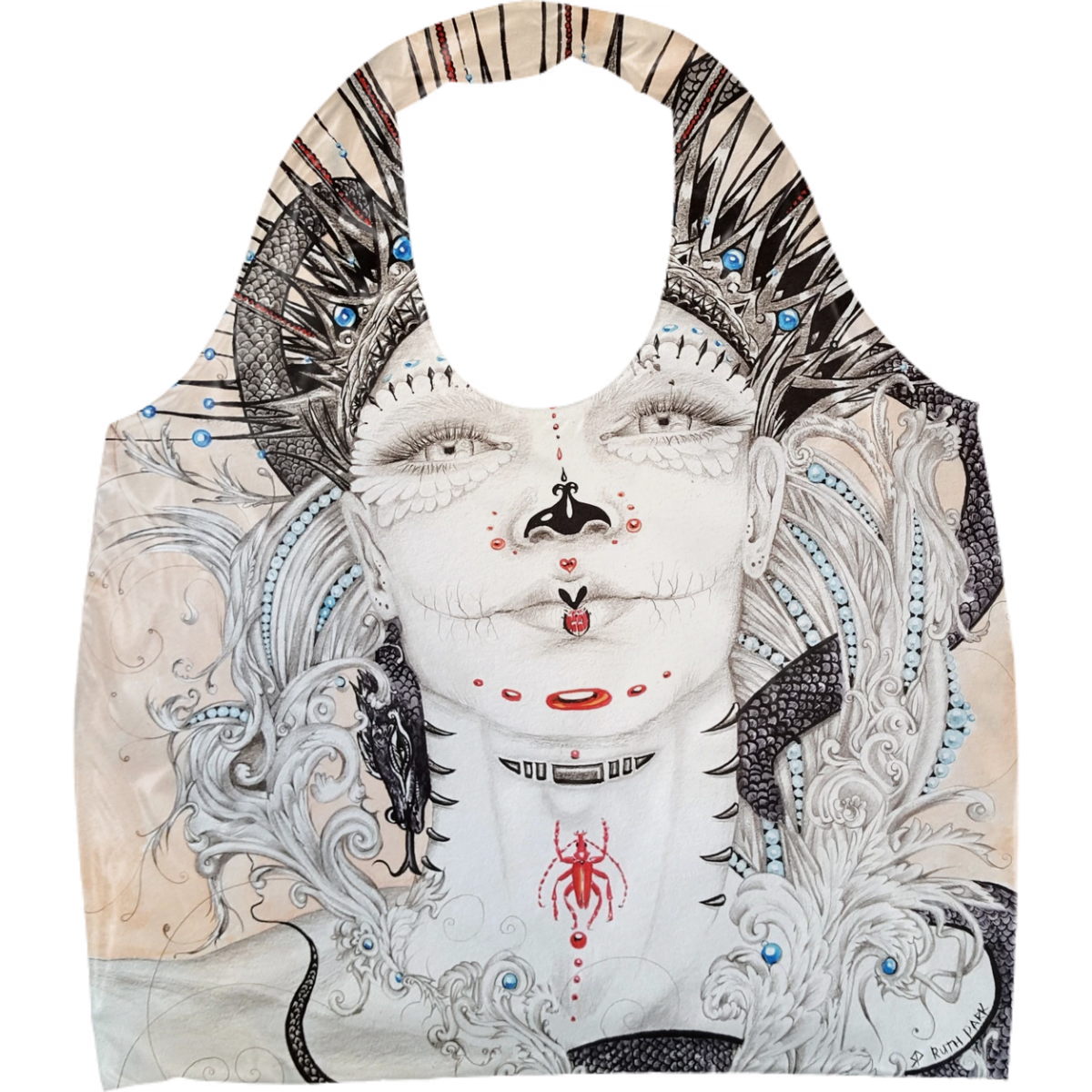 Day of the dead dia de los muertos hand drawn portrait viking inspired snakes butterfly