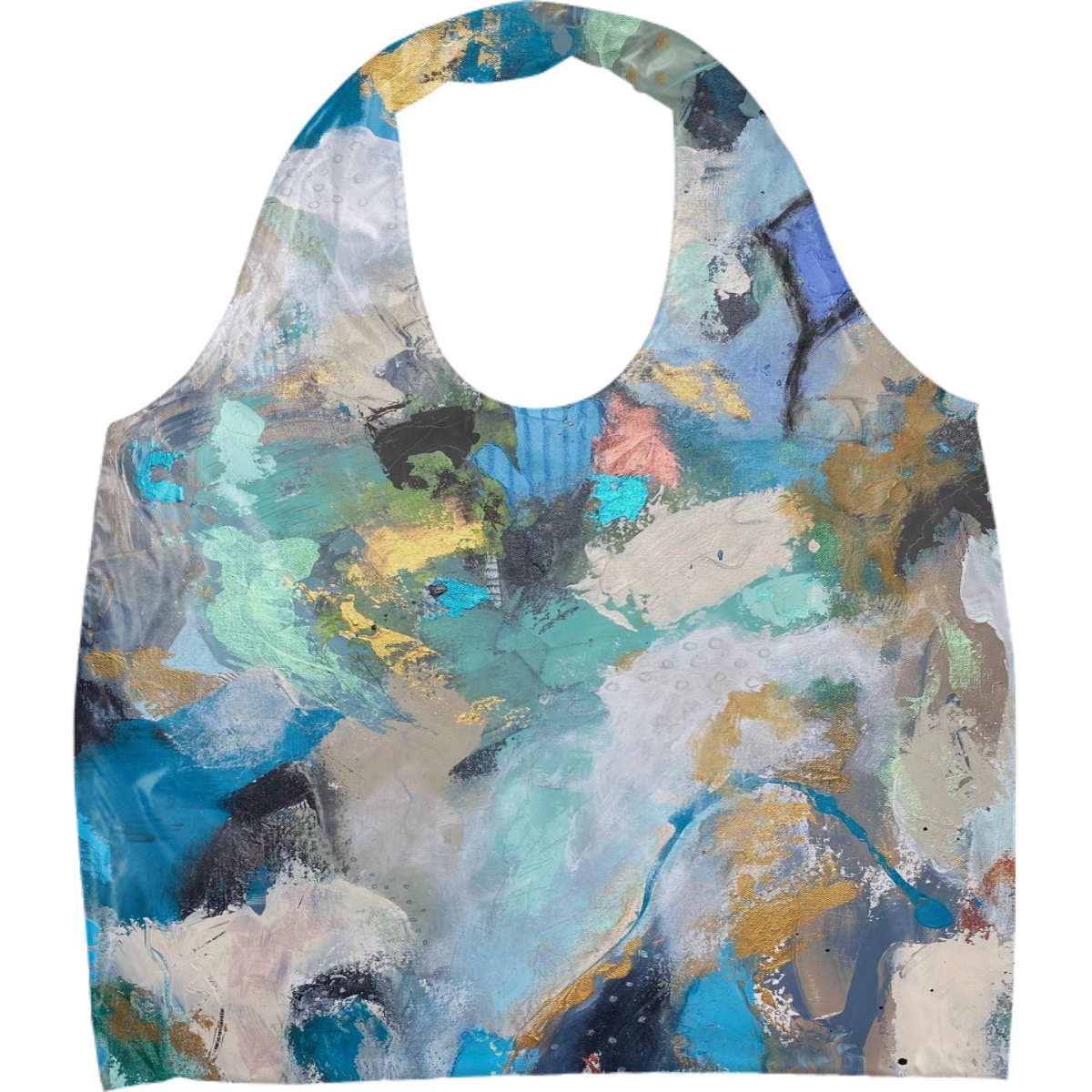 Light eco tote bag that easily folds down to fit inside a pouch sewn to the inner seam. Throw it in your car to have on hand for grocery shopping or running errands.