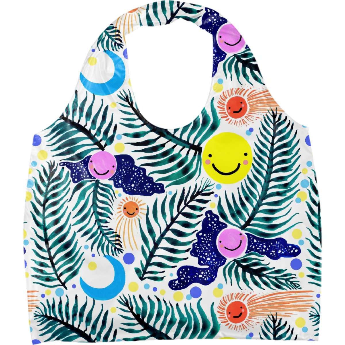 Light eco tote bag that easily folds down to fit inside a pouch sewn to the inner seam. Throw it in your car to have on hand for grocery shopping or running errands.