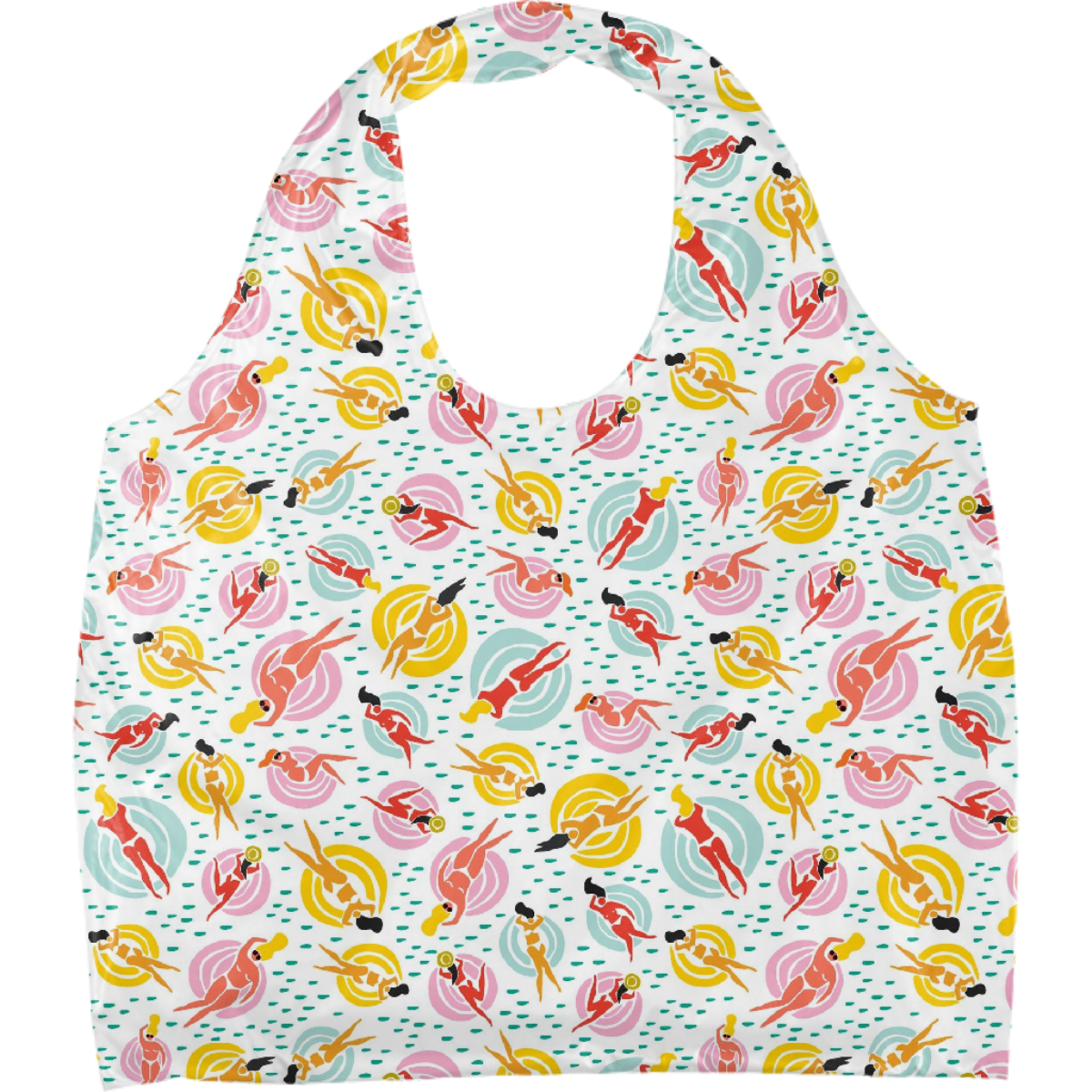 Light eco tote bag that easily folds down to fit inside a pouch sewn to the inner seam. Throw it in your car to have on hand for grocery shopping or running errands.