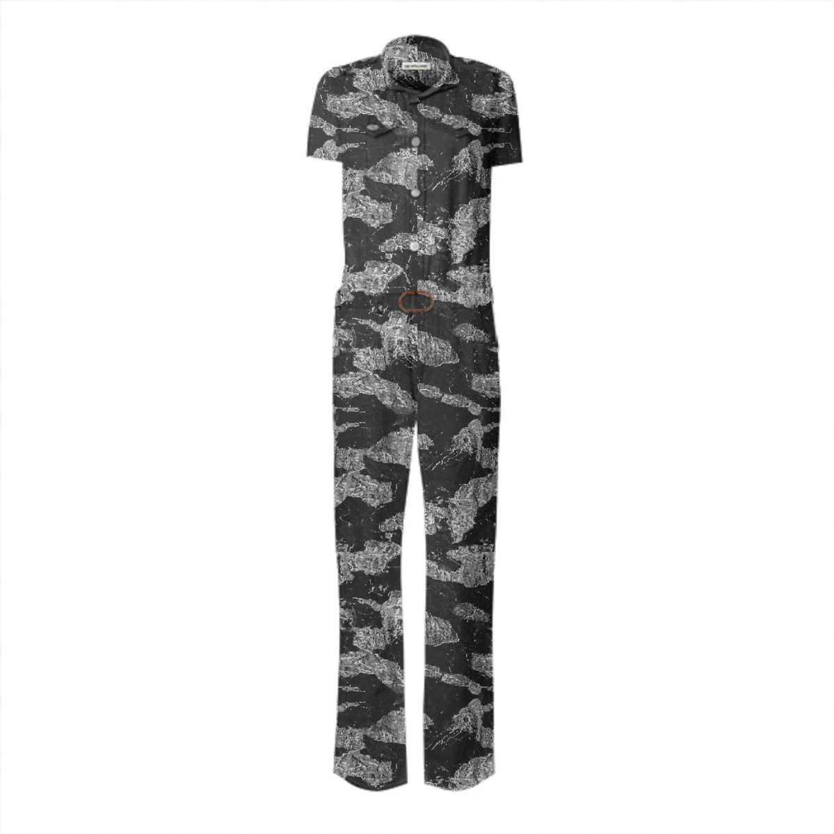 Designed by Gabriel Held this stretch belted jumpsuit is based off of the iconic Frankie B jumpsuit made famous by JLo. Features metal snaps up the front two pleated chest pockets and detachable belt.