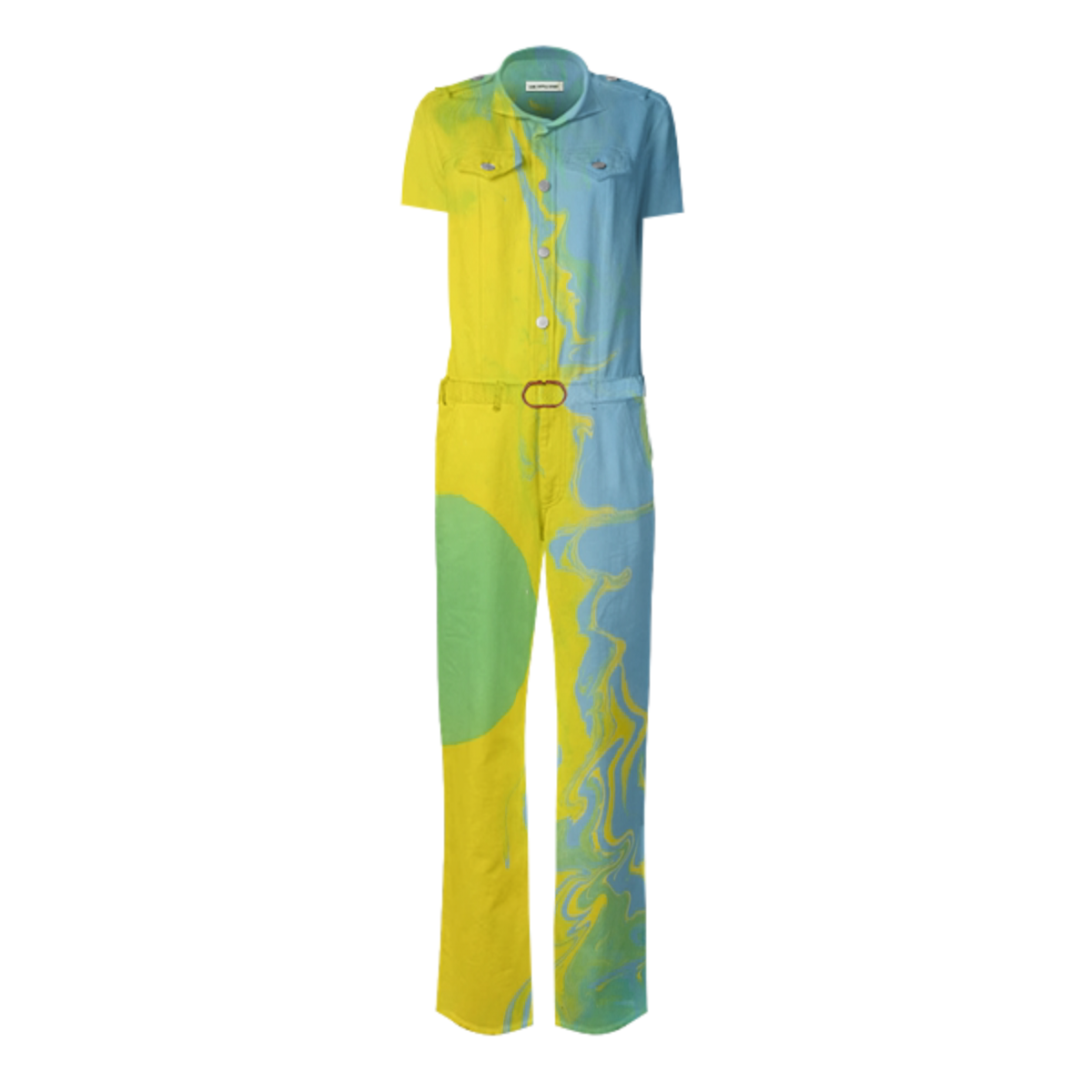 Designed by Gabriel Held this stretch belted jumpsuit is based off of the iconic Frankie B jumpsuit made famous by JLo. Features metal snaps up the front two pleated chest pockets and detachable belt.