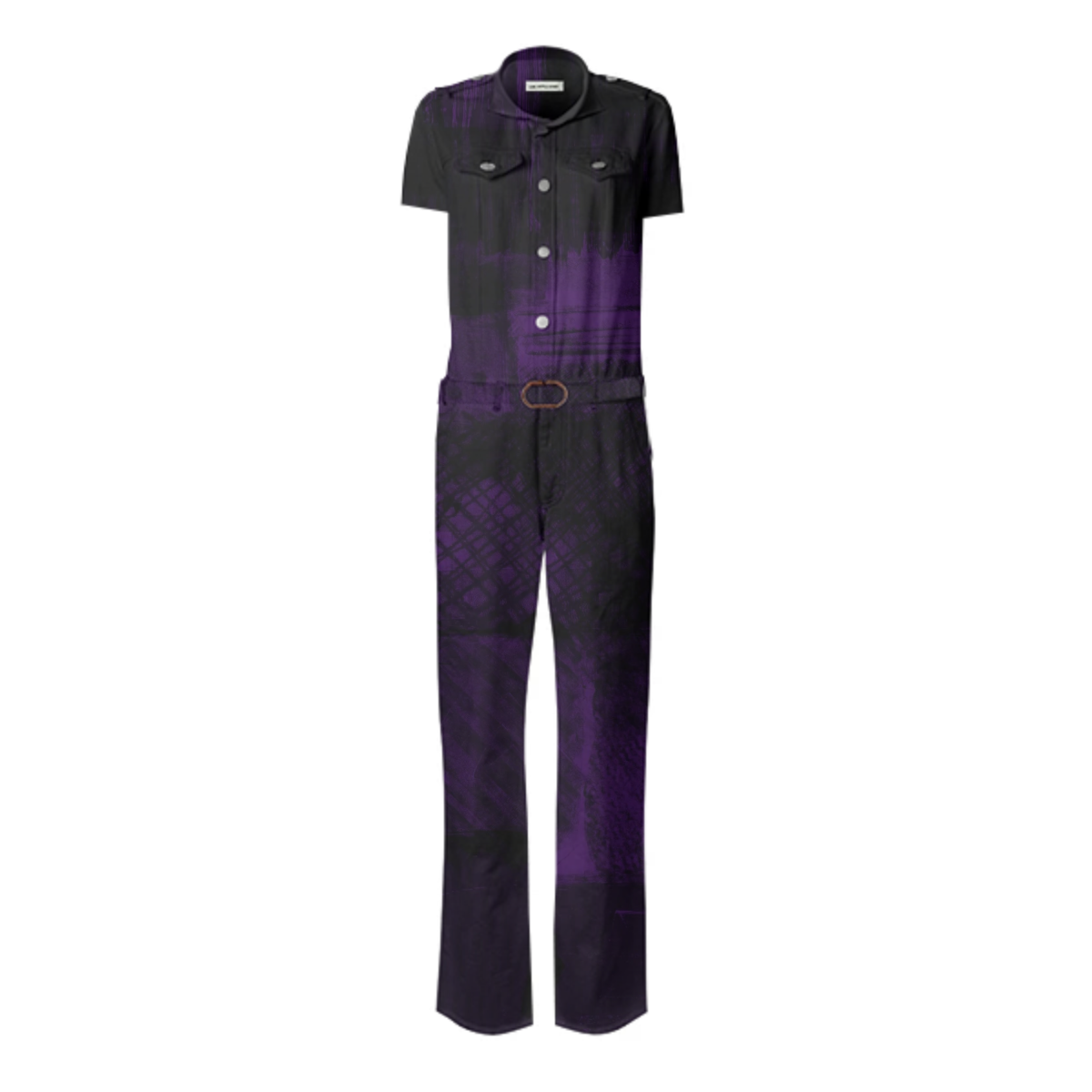 Designed by Gabriel Held this stretch belted jumpsuit is based off of the iconic Frankie B jumpsuit made famous by JLo. Features metal snaps up the front two pleated chest pockets and detachable belt.