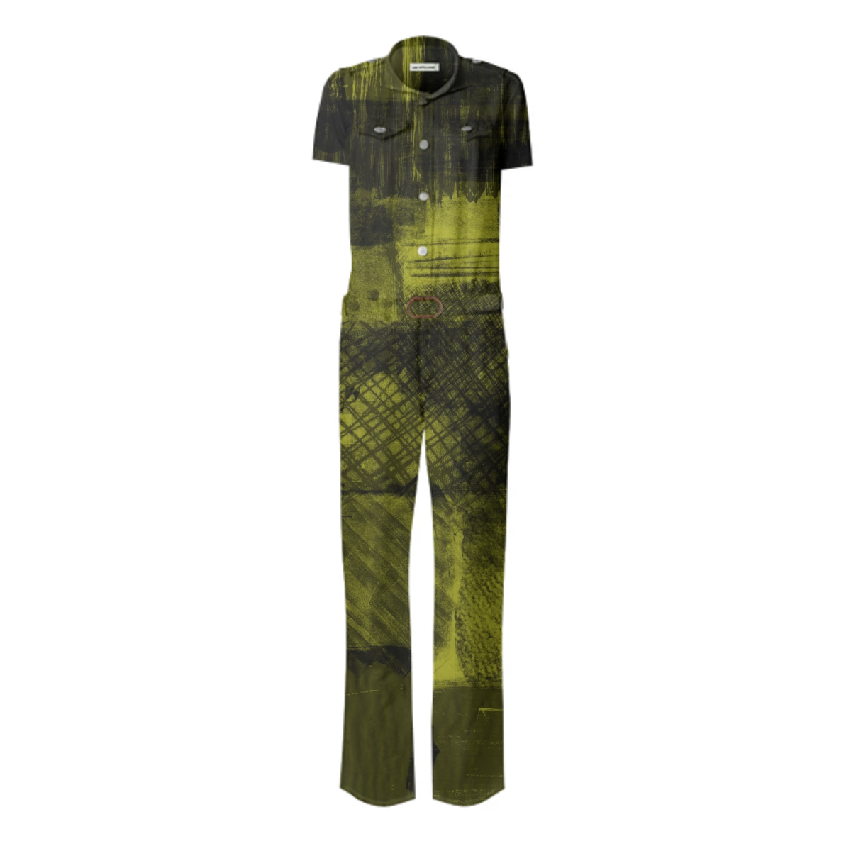Designed by Gabriel Held this stretch belted jumpsuit is based off of the iconic Frankie B jumpsuit made famous by JLo. Features metal snaps up the front two pleated chest pockets and detachable belt.