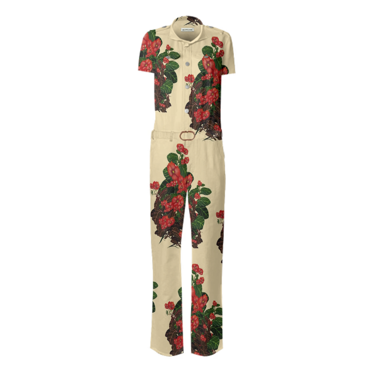 Designed by Gabriel Held this stretch belted jumpsuit is based off of the iconic Frankie B jumpsuit made famous by JLo. Features metal snaps up the front two pleated chest pockets and detachable belt.