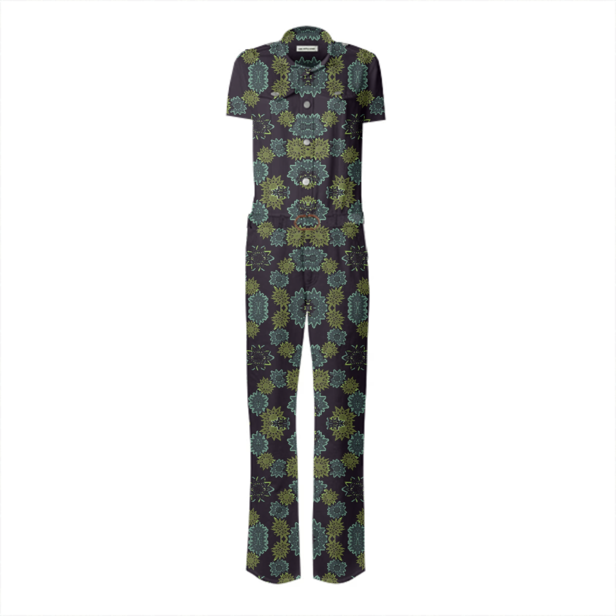 Designed by Gabriel Held this stretch belted jumpsuit is based off of the iconic Frankie B jumpsuit made famous by JLo. Features metal snaps up the front two pleated chest pockets and detachable belt.