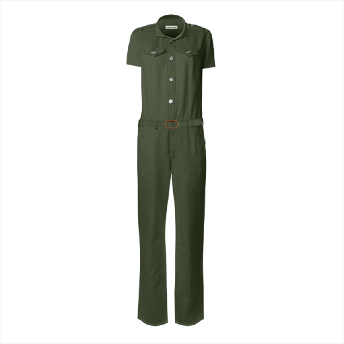 Designed by Gabriel Held this stretch belted jumpsuit is based off of the iconic Frankie B jumpsuit made famous by JLo. Features metal snaps up the front two pleated chest pockets and detachable belt.