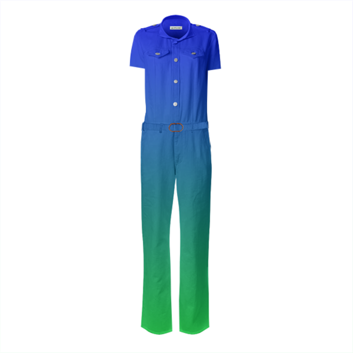 Designed by Gabriel Held this stretch belted jumpsuit is based off of the iconic Frankie B jumpsuit made famous by JLo. Features metal snaps up the front two pleated chest pockets and detachable belt.