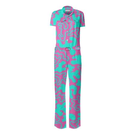 Designed by Gabriel Held this stretch belted jumpsuit is based off of the iconic Frankie B jumpsuit made famous by JLo. Features metal snaps up the front two pleated chest pockets and detachable belt.