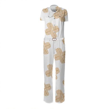 Designed by Gabriel Held this stretch belted jumpsuit is based off of the iconic Frankie B jumpsuit made famous by JLo. Features metal snaps up the front two pleated chest pockets and detachable belt.