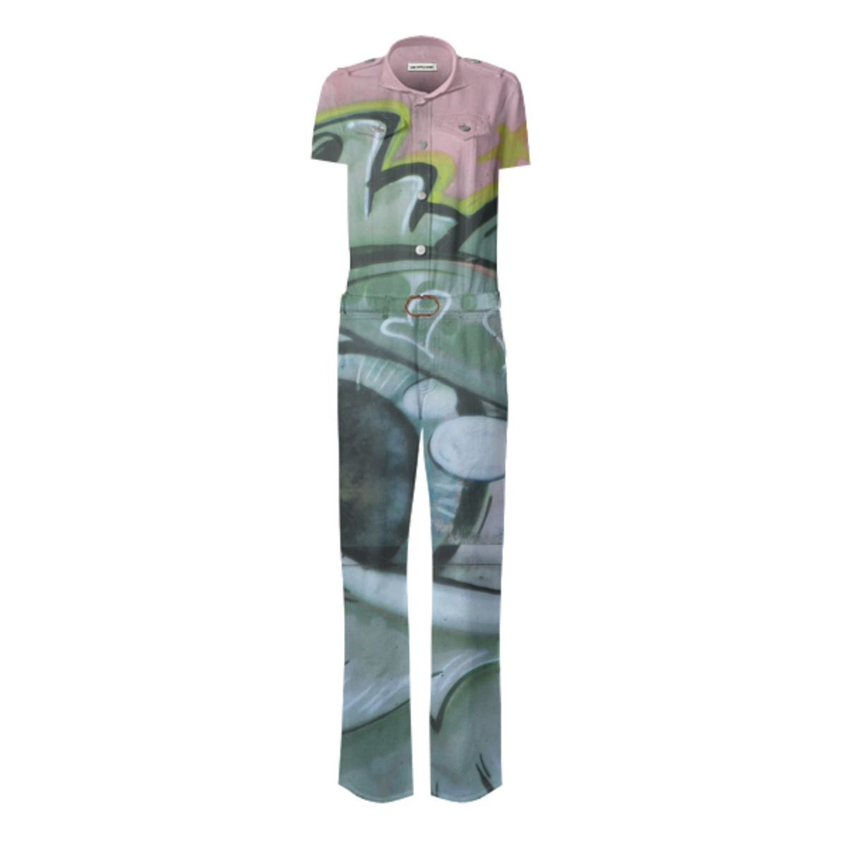 Designed by Gabriel Held this stretch belted jumpsuit is based off of the iconic Frankie B jumpsuit made famous by JLo. Features metal snaps up the front two pleated chest pockets and detachable belt.