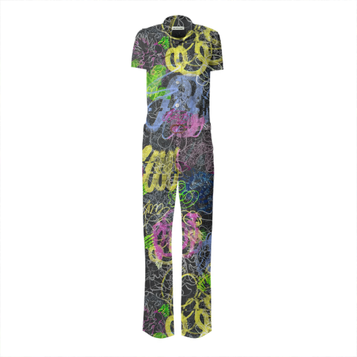 Designed by Gabriel Held this stretch belted jumpsuit is based off of the iconic Frankie B jumpsuit made famous by JLo. Features metal snaps up the front two pleated chest pockets and detachable belt.