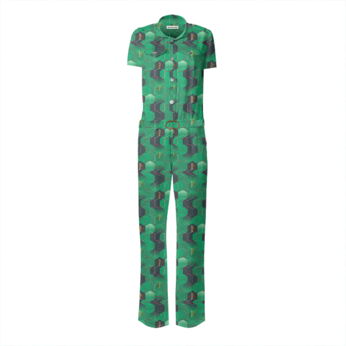 Designed by Gabriel Held this stretch belted jumpsuit is based off of the iconic Frankie B jumpsuit made famous by JLo. Features metal snaps up the front two pleated chest pockets and detachable belt.