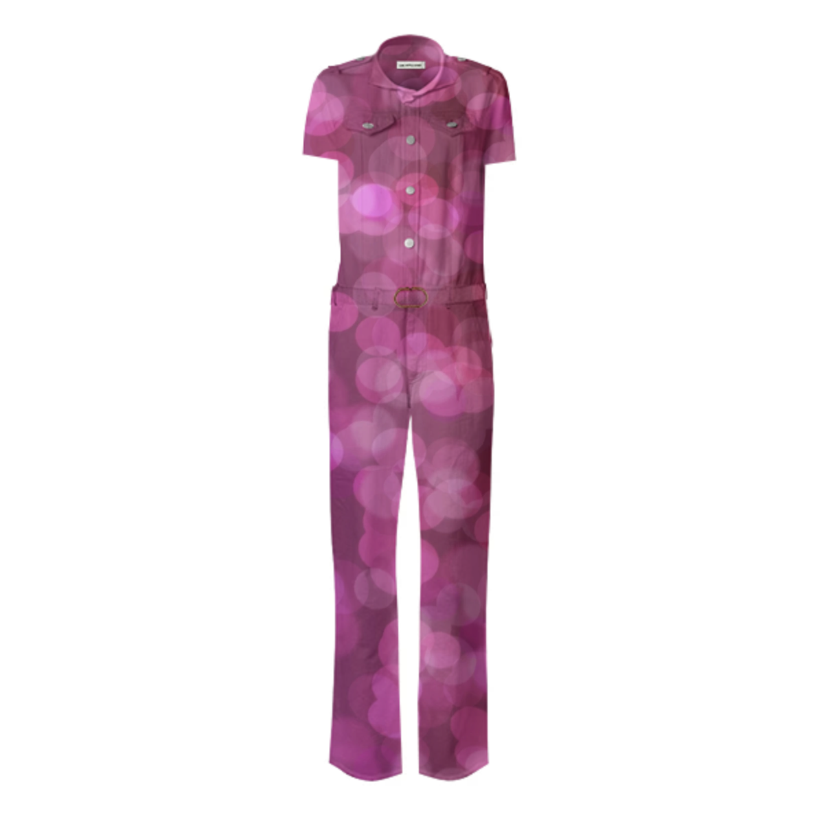 Designed by Gabriel Held this stretch belted jumpsuit is based off of the iconic Frankie B jumpsuit made famous by JLo. Features metal snaps up the front two pleated chest pockets and detachable belt.