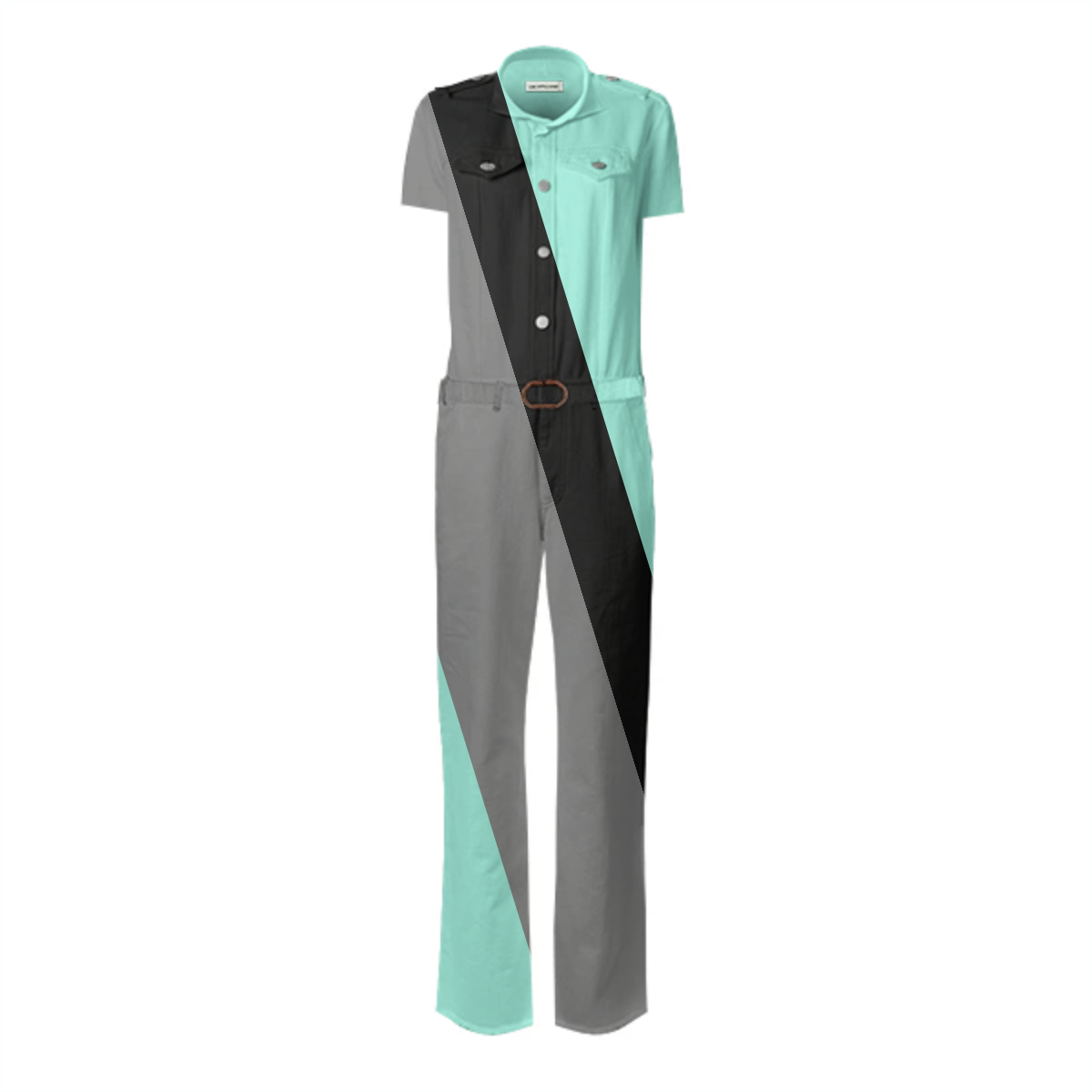 Designed by Gabriel Held this stretch belted jumpsuit is based off of the iconic Frankie B jumpsuit made famous by JLo. Features metal snaps up the front two pleated chest pockets and detachable belt.