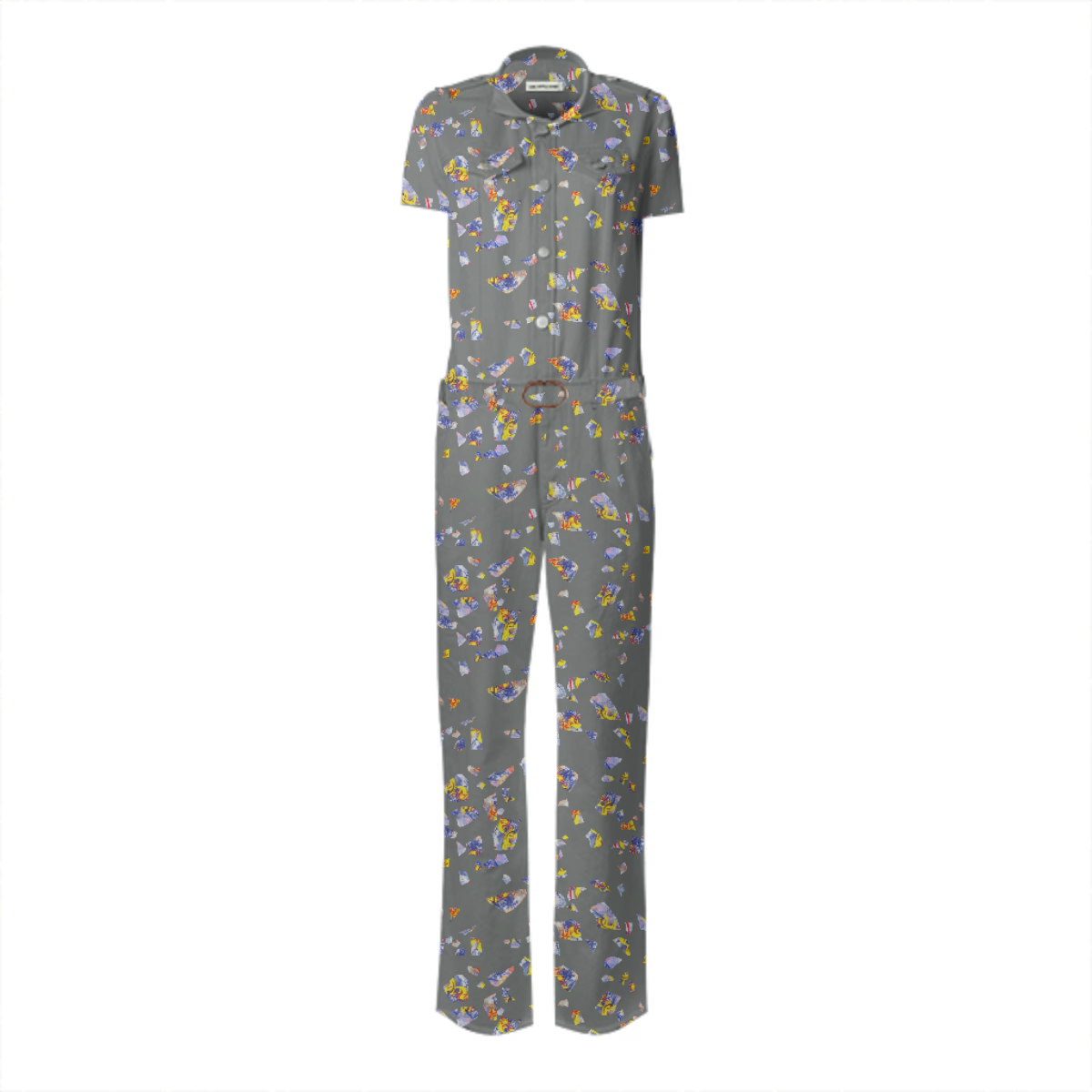 Designed by Gabriel Held this stretch belted jumpsuit is based off of the iconic Frankie B jumpsuit made famous by JLo. Features metal snaps up the front two pleated chest pockets and detachable belt.