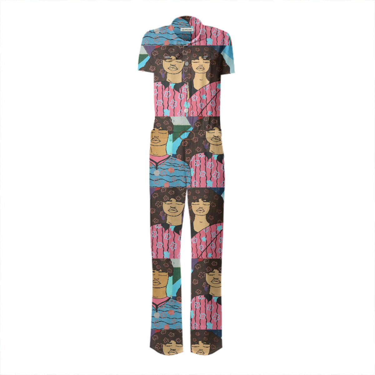 Designed by Gabriel Held this stretch belted jumpsuit is based off of the iconic Frankie B jumpsuit made famous by JLo. Features metal snaps up the front two pleated chest pockets and detachable belt.