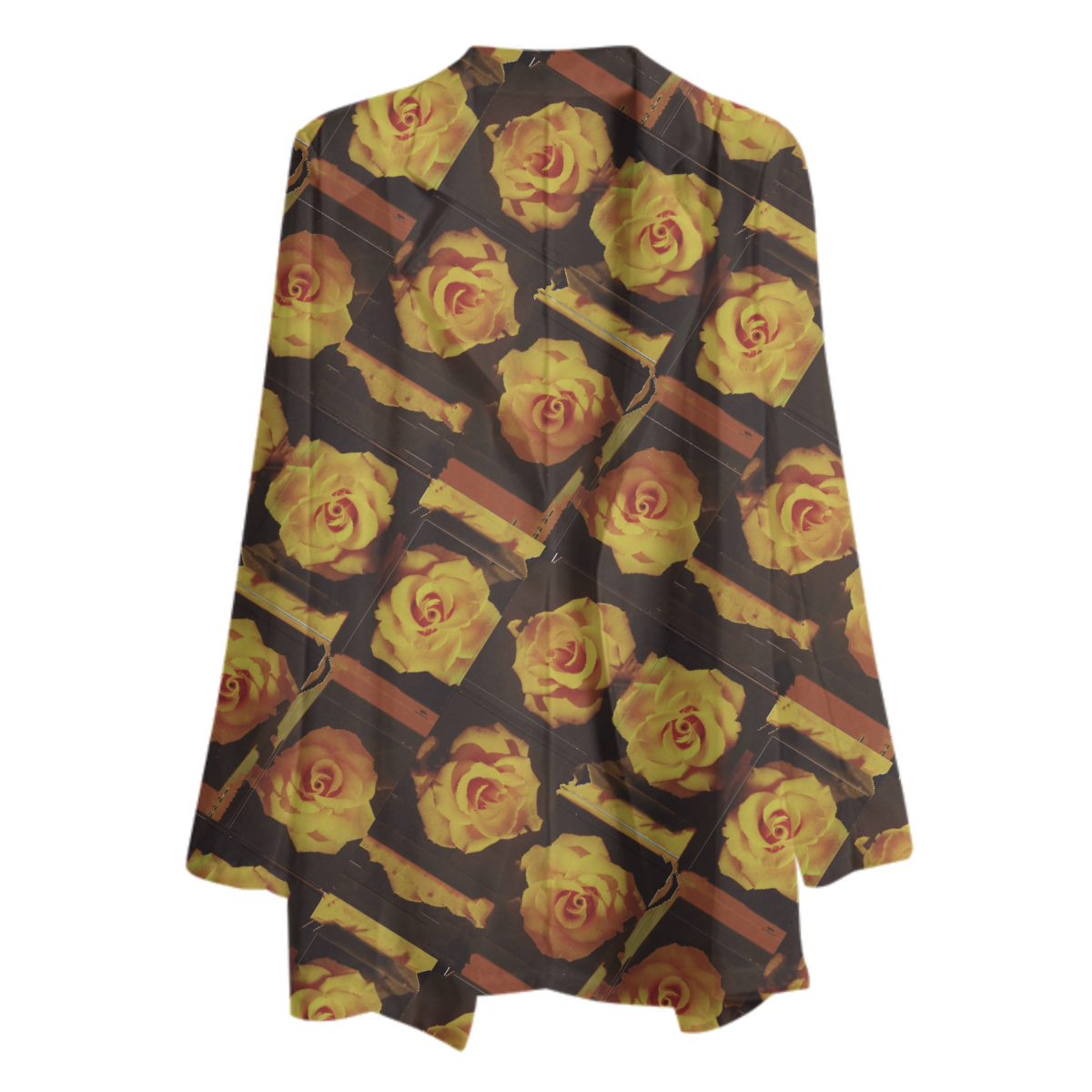 Designed by Gabriel Held this loose fit chiffon blazer features plastic buttons down the front two front flap pockets and a welt left breast pocket. Made with two layers of printed chiffon.