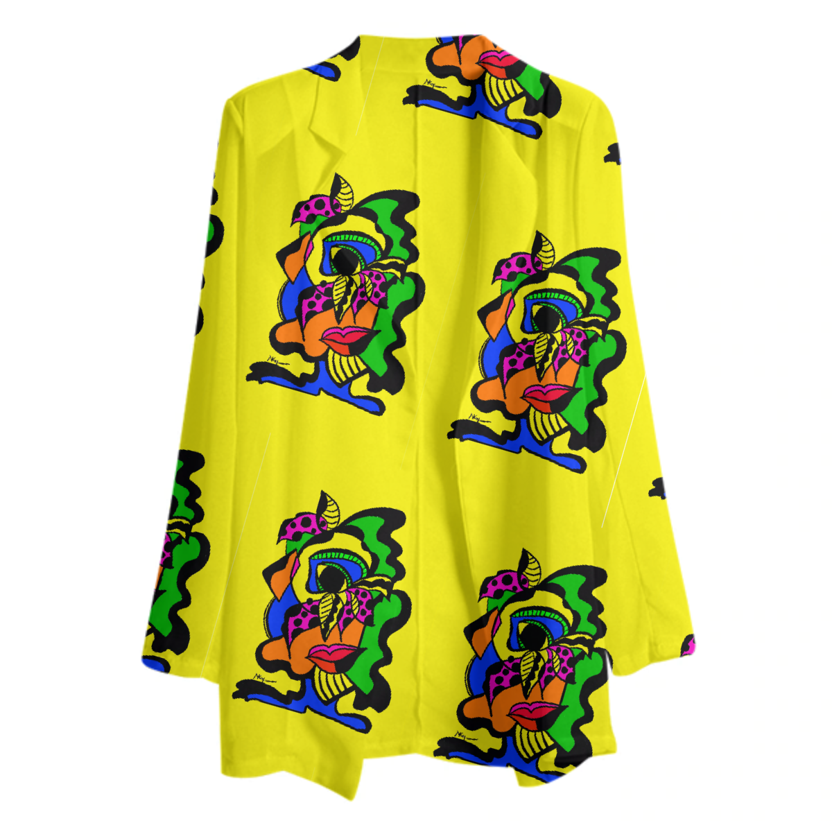 Designed by Gabriel Held this loose fit chiffon blazer features plastic buttons down the front two front flap pockets and a welt left breast pocket. Made with two layers of printed chiffon.