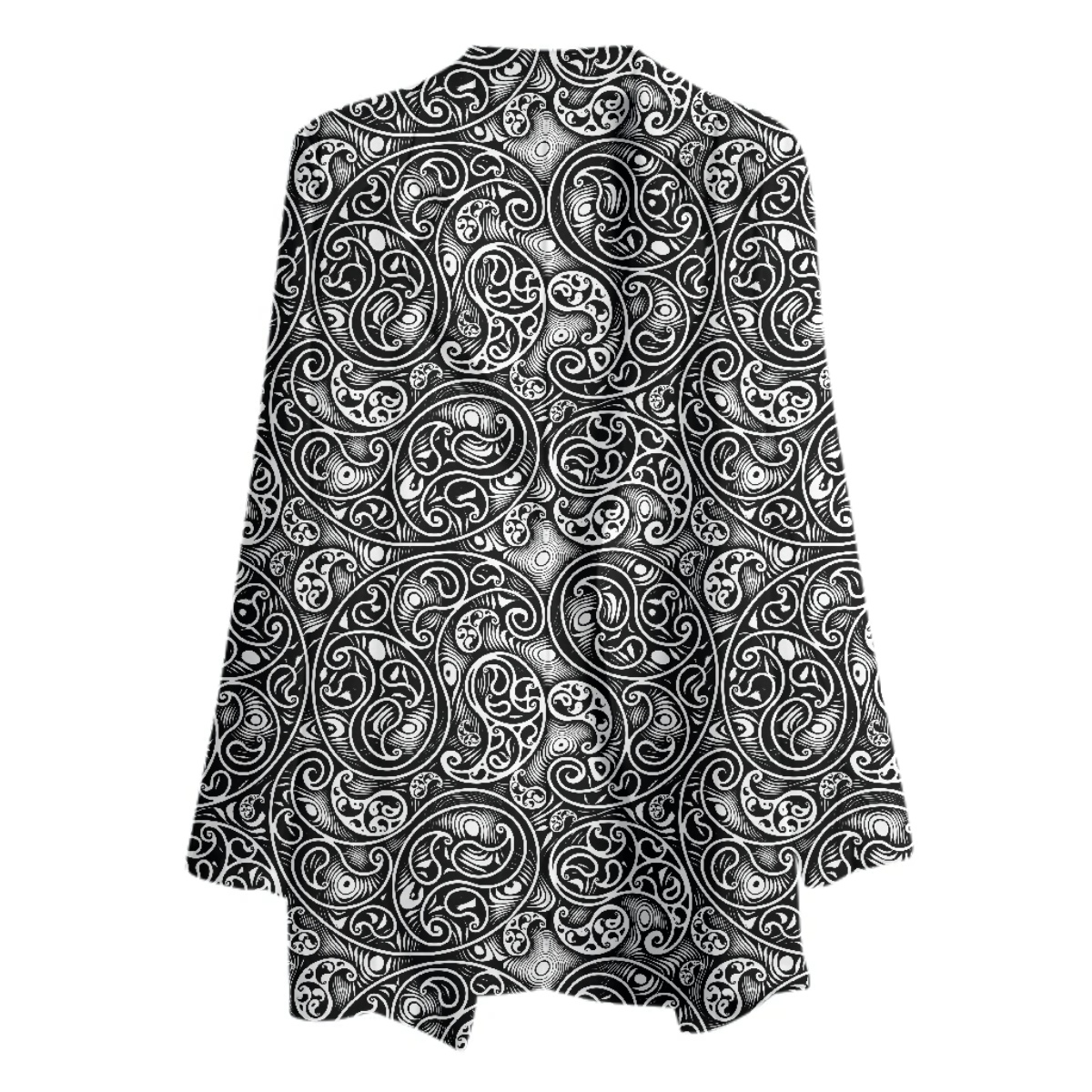 Designed by Gabriel Held this loose fit chiffon blazer features plastic buttons down the front two front flap pockets and a welt left breast pocket. Made with two layers of printed chiffon.