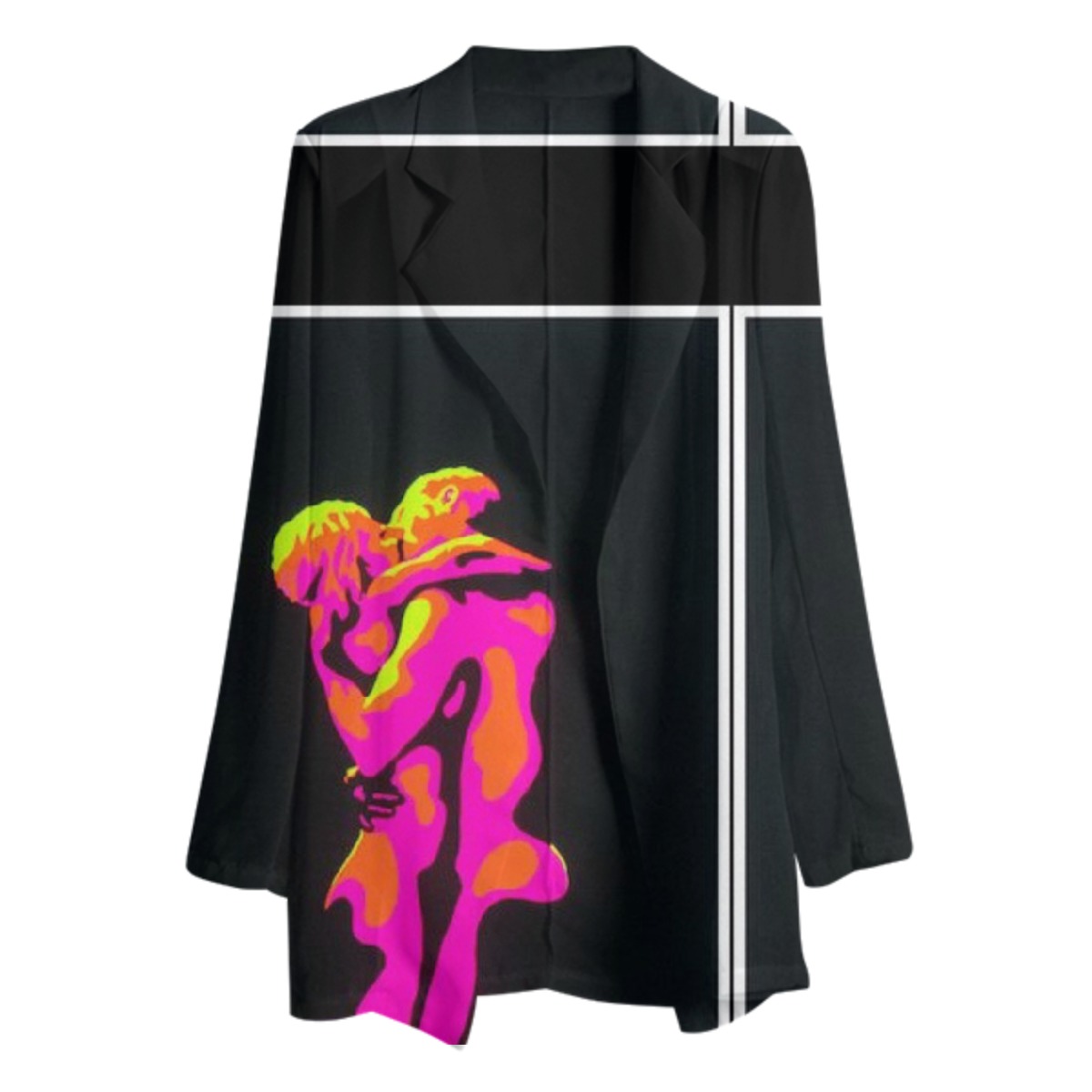 The uploaded file will be printed on the entire front and be mirrored on the back. Because of our cut and sew process some print elements on pockets seams and sleeves might not match up. For best results please upload a PNG or JPG with RGB color profile and dimensions of at least 35 inches width by 30 inches length. DPI can be as low as 72.