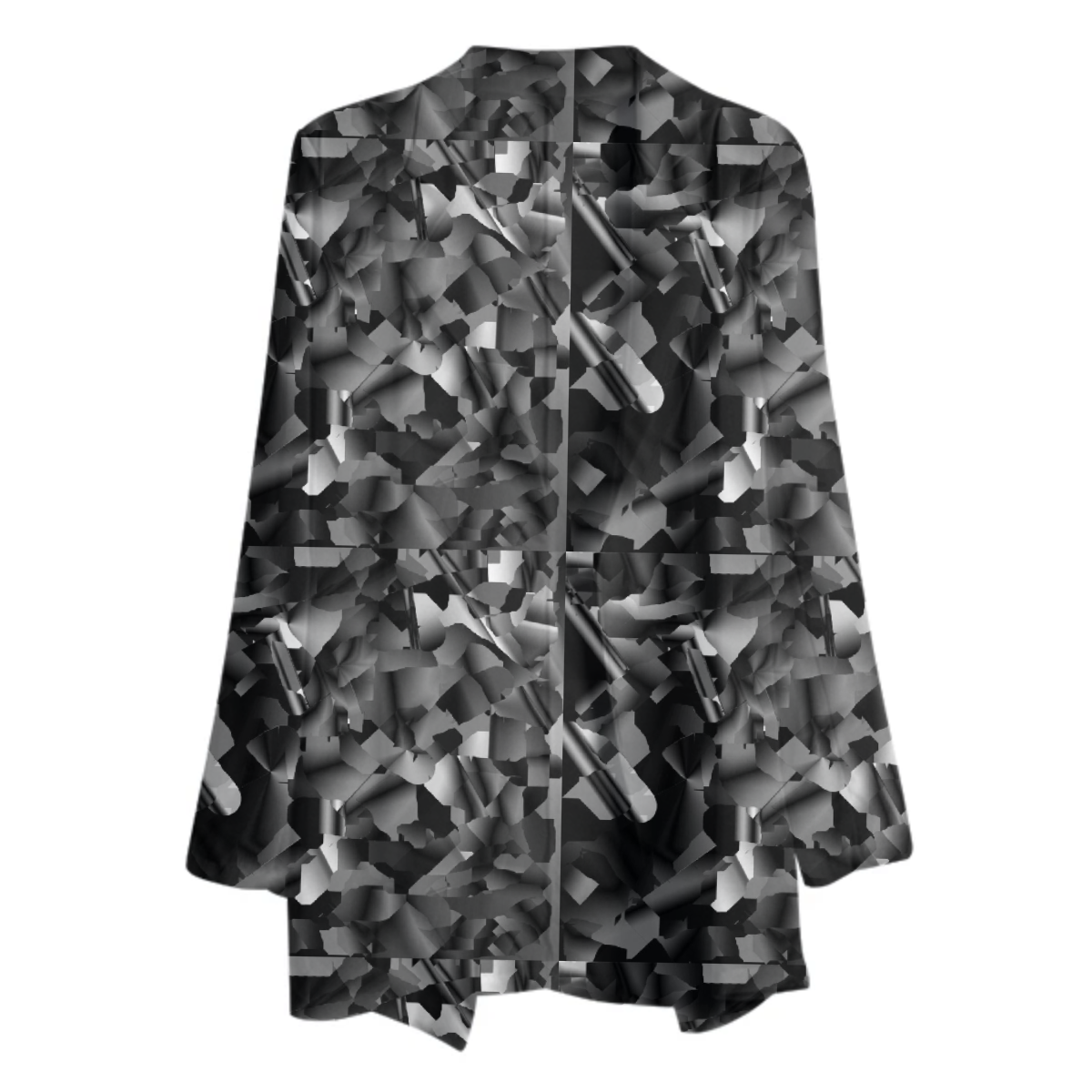 Designed by Gabriel Held this loose fit chiffon blazer features plastic buttons down the front two front flap pockets and a welt left breast pocket. Made with two layers of printed chiffon.