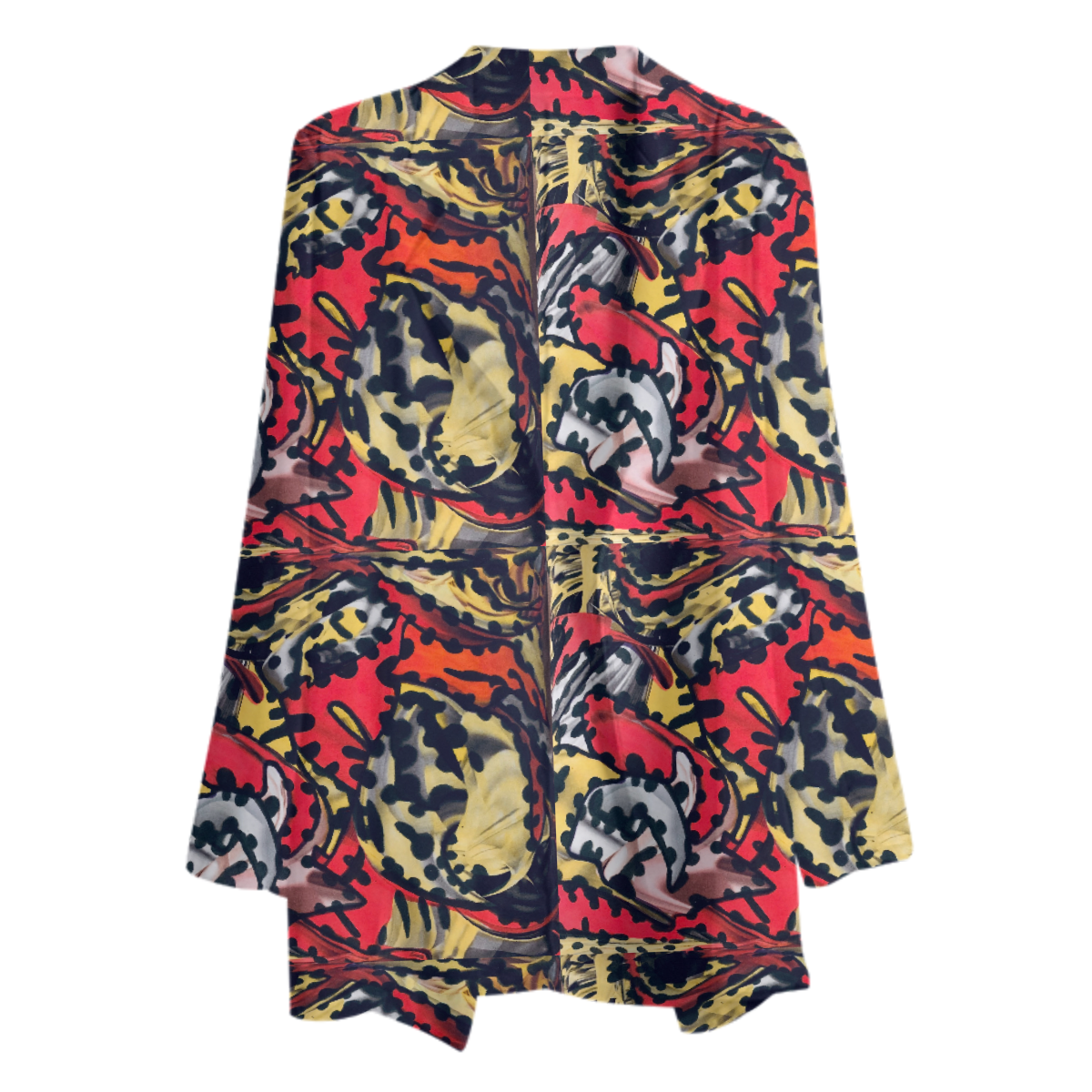 Designed by Gabriel Held this loose fit chiffon blazer features plastic buttons down the front two front flap pockets and a welt left breast pocket. Made with two layers of printed chiffon.